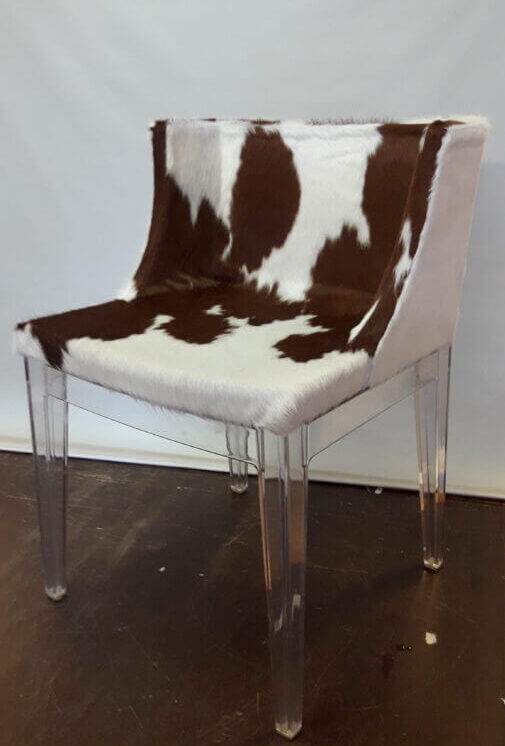 Omklädsel av stol med kohud, till företag i Stockholm.